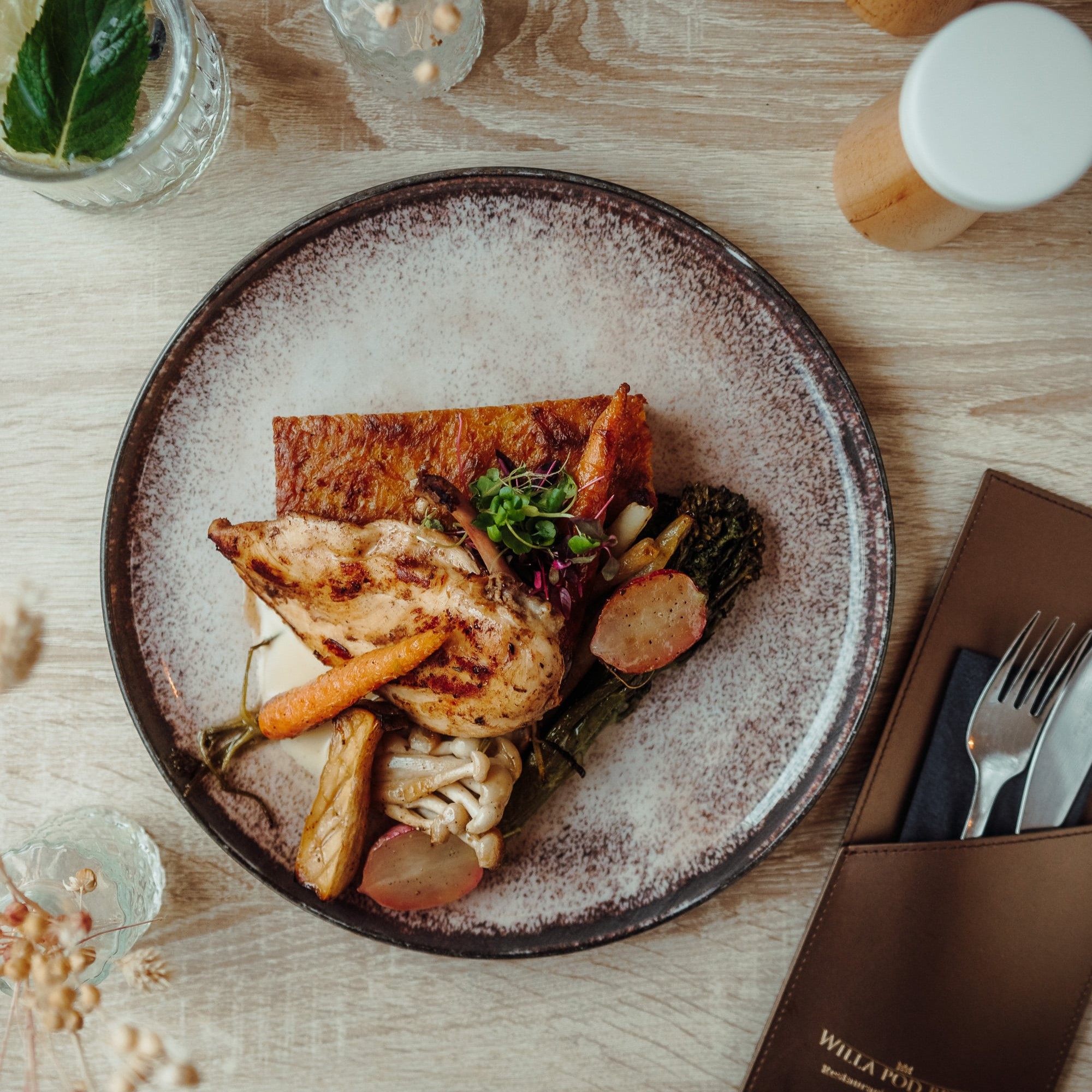 MASCARPONE | PIECZARKI | SZPINAK | SUSZONE POMIDORY | ZIEMNIAKI OPIEKANE | WARZYWA SEZONOWE | SOS BEURRE BLANC
